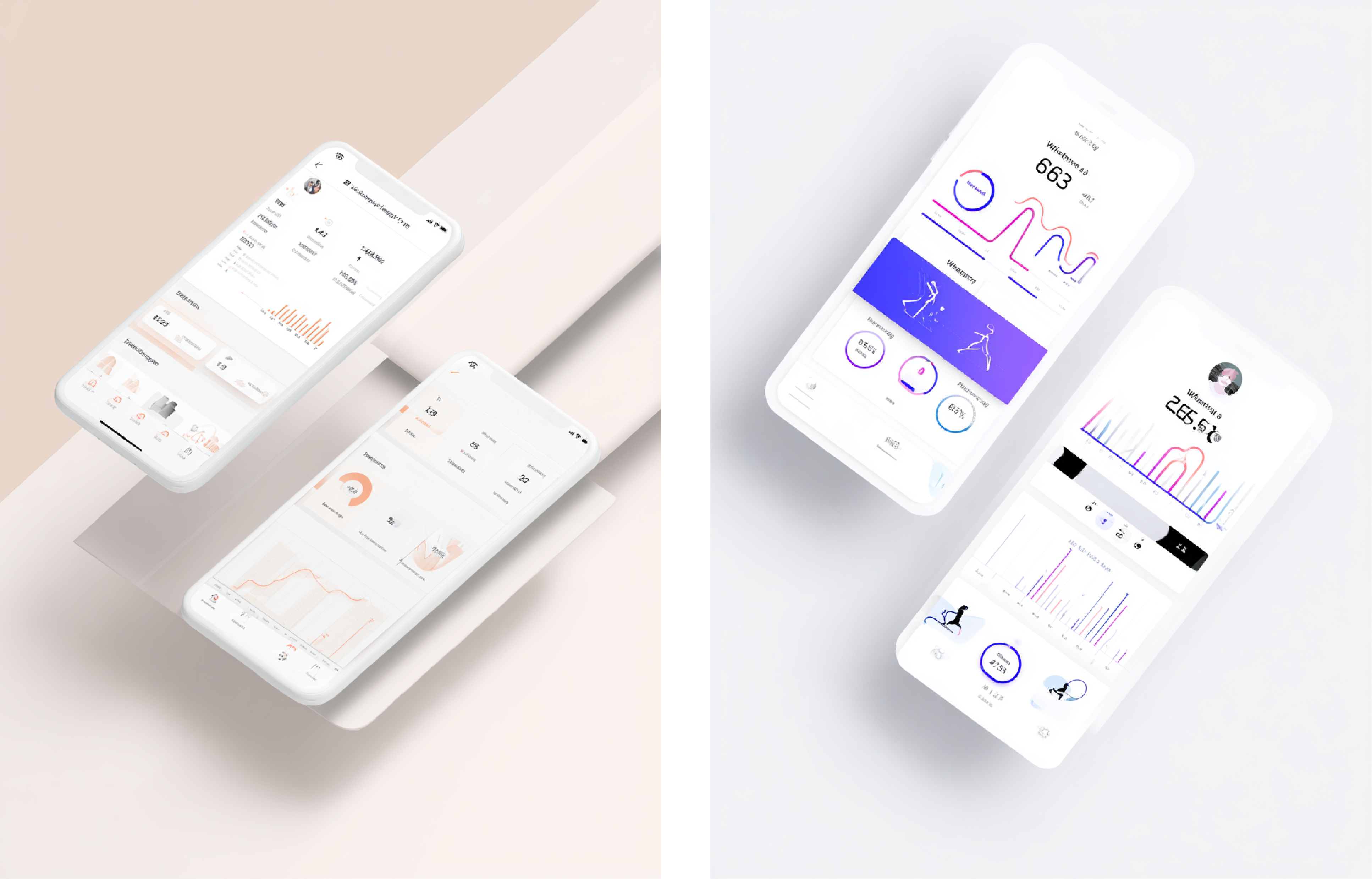 采用极简设计风格的健身追踪移动应用仪表盘,集成了直观的进度数据图表