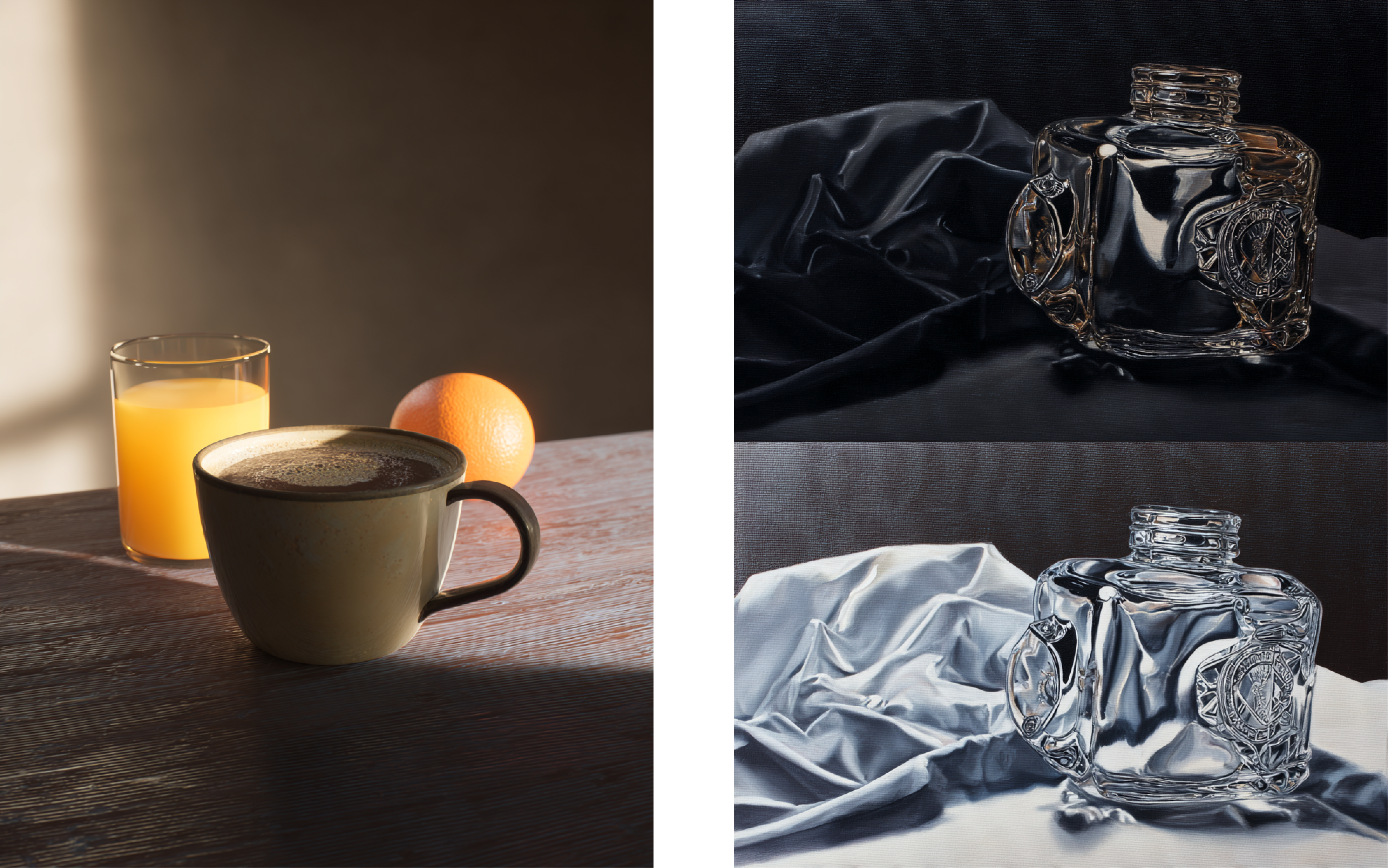 在保持光影与背景环境完全一致的前提下,将桌上的咖啡杯替换为一杯橙汁。